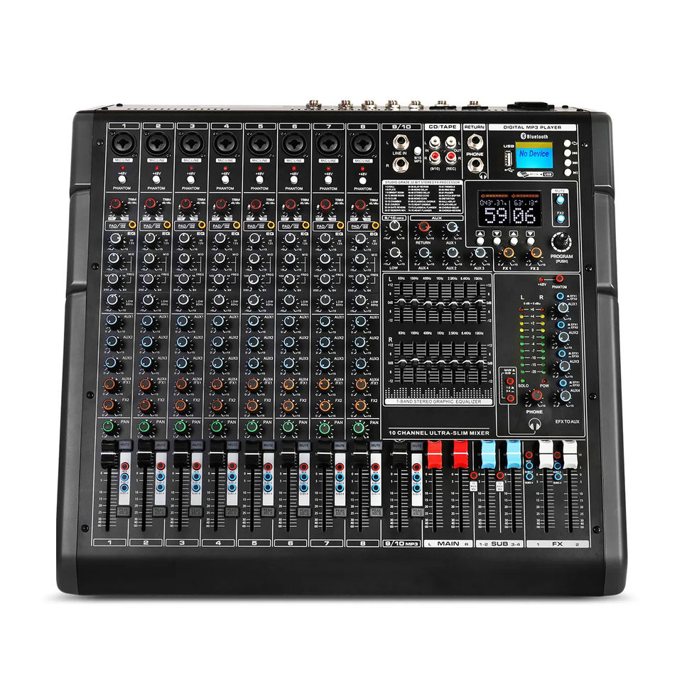 มิกเซอร์คอนโซลรุ่นใหม่ PG10 ระดับมืออาชีพ โครงสร้างโลหะ พร้อมเอฟเฟคเสียงก้องสเตอริโอ 99 แบบ 10 ช่องสัญญาณ ได้รับการรับรองมาตรฐาน CE เหมาะสำหรับงานกลางแจ้ง