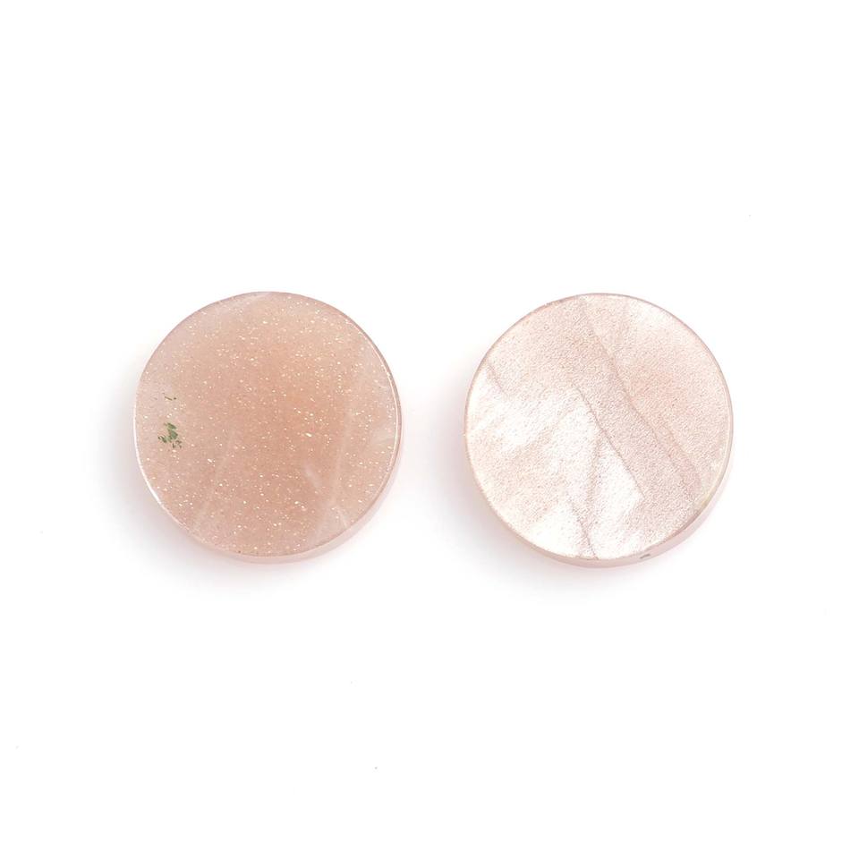 พลอยมูนสโตนสีพีชธรรมชาติ ขนาด 12 มม. รูปทรงเหรียญเรียบ ทั้งสองด้าน สำหรับทำเครื่องประดับและบำบัดพลังงาน