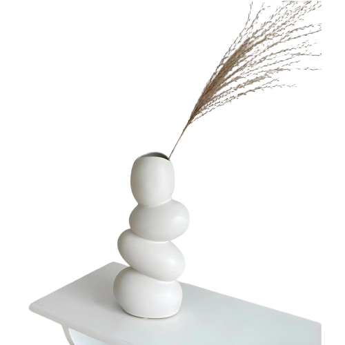 New Arrival Pebble Shaped White Ceramic Vase With White Color Body Flower Vases Decorative With the Sizes of 20x10x10 cm