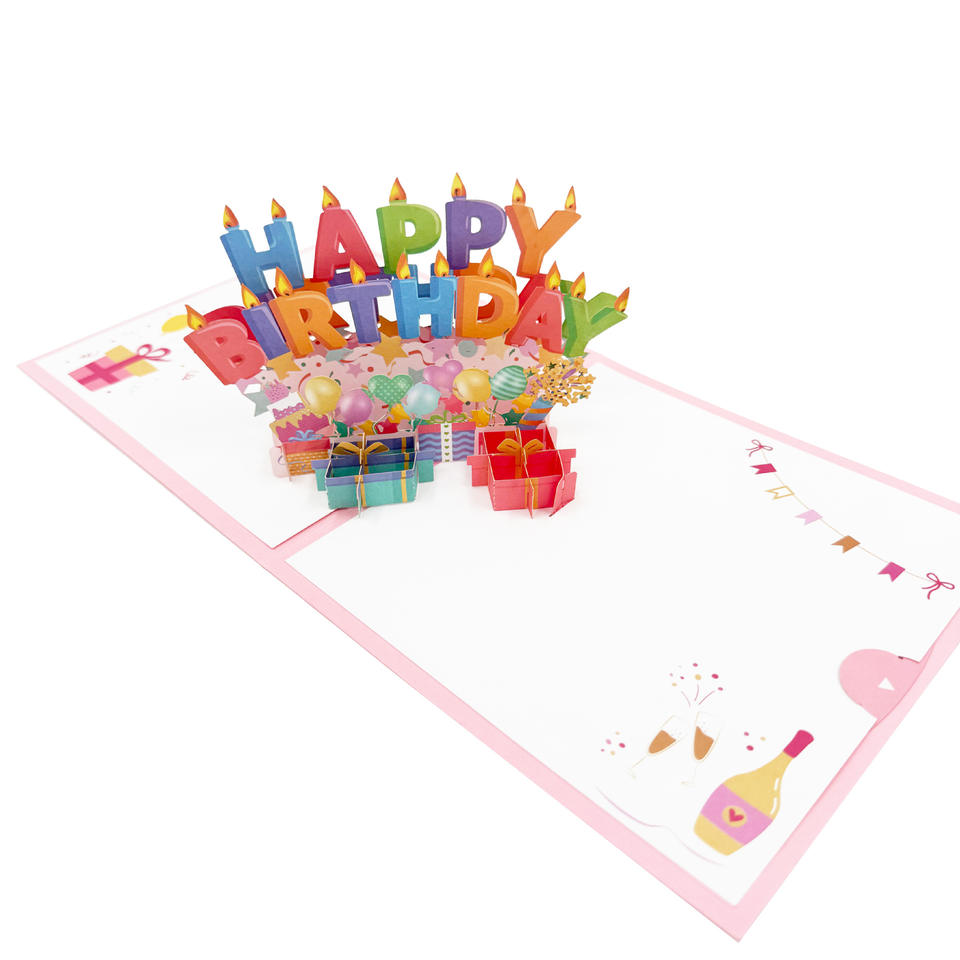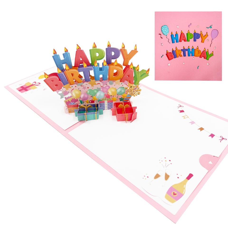 การ์ดอวยพรวันเกิด 3 มิติ สีชมพู แฮนด์เมด สำหรับเพื่อนและครอบครัว รุ่นใหม่ล่าสุด