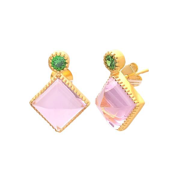 มาใหม่สีชมพู Hydro และสีเขียว CZ พลอย925สเตอร์ลิงเจ้าหญิงรูปร่างต่างหูเงิน