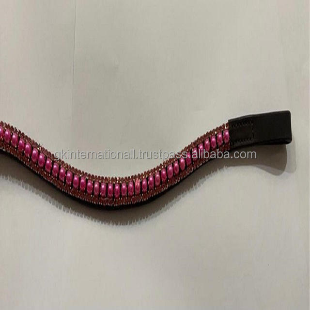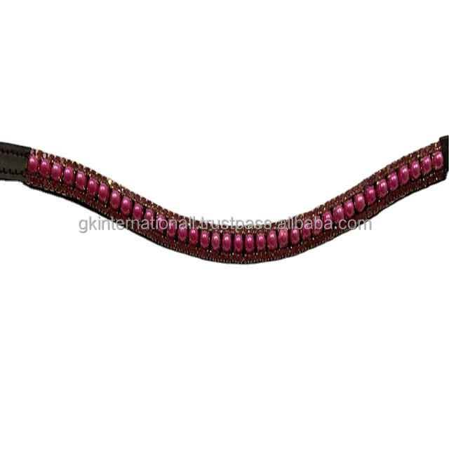 สินค้ามาใหม่-ไข่มุกสีชมพูและคริสตัลคลื่นที่สวยงามสายรัดคิ้วหนังคริสตัล3แถวผู้ผลิตในอินเดีย-กำหนดขนาดเองได้