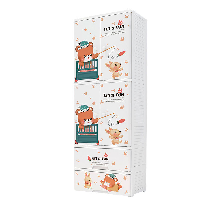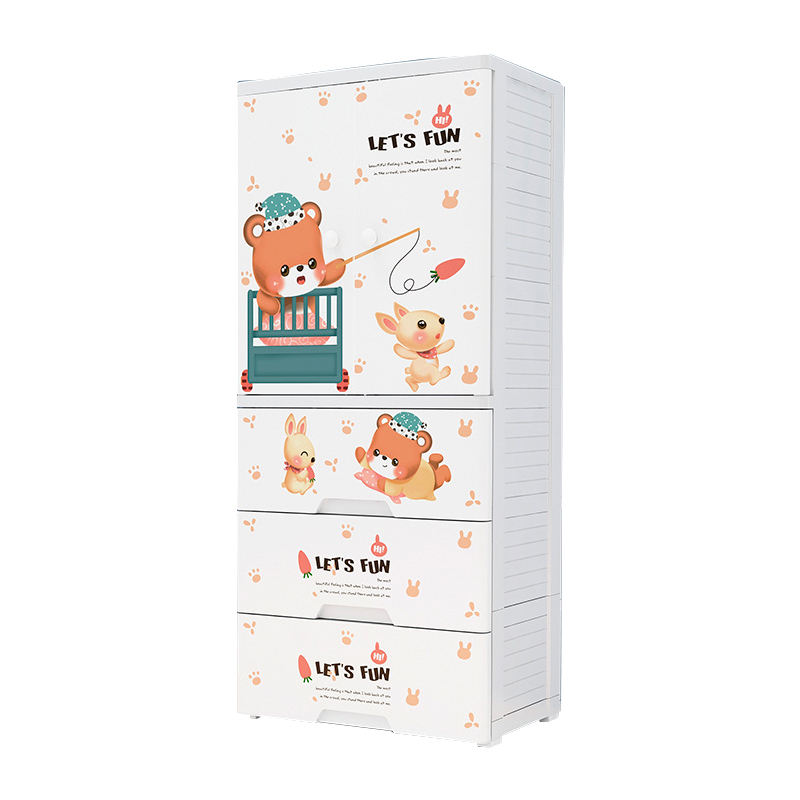 New Arrival Plastic Wardrobe Cabinet for Kids 58 CM Modern Cartoon Pattern Children Drawer Storage Closet 3/4/5 Layers Organizer