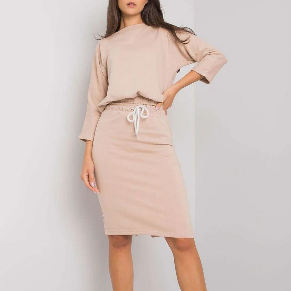 ชุดเซ็ตสองชิ้นสำหรับสาวพลัสไซส์มาใหม่ เสื้อแขนยาวและกระโปรงยาวสไตล์ลำลองสำหรับฤดูร้อน ชุดผูกเชือกสไตล์สาวชิล