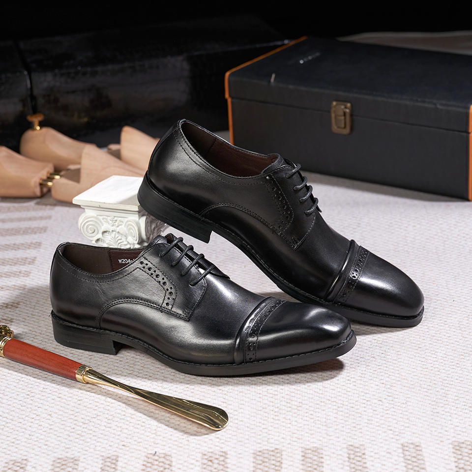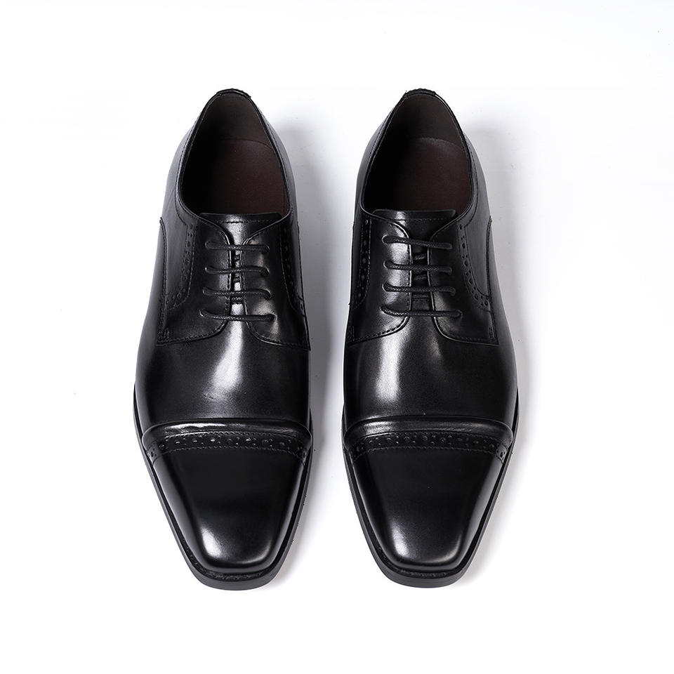 รองเท้าหนังผู้ชายทรงหัวแหลมแบบทางการและลำลอง หนังวัวแท้ ดีไซน์ลายนูนทันสมัย