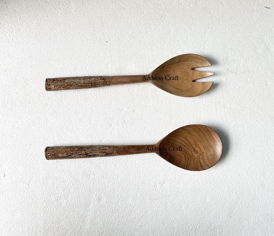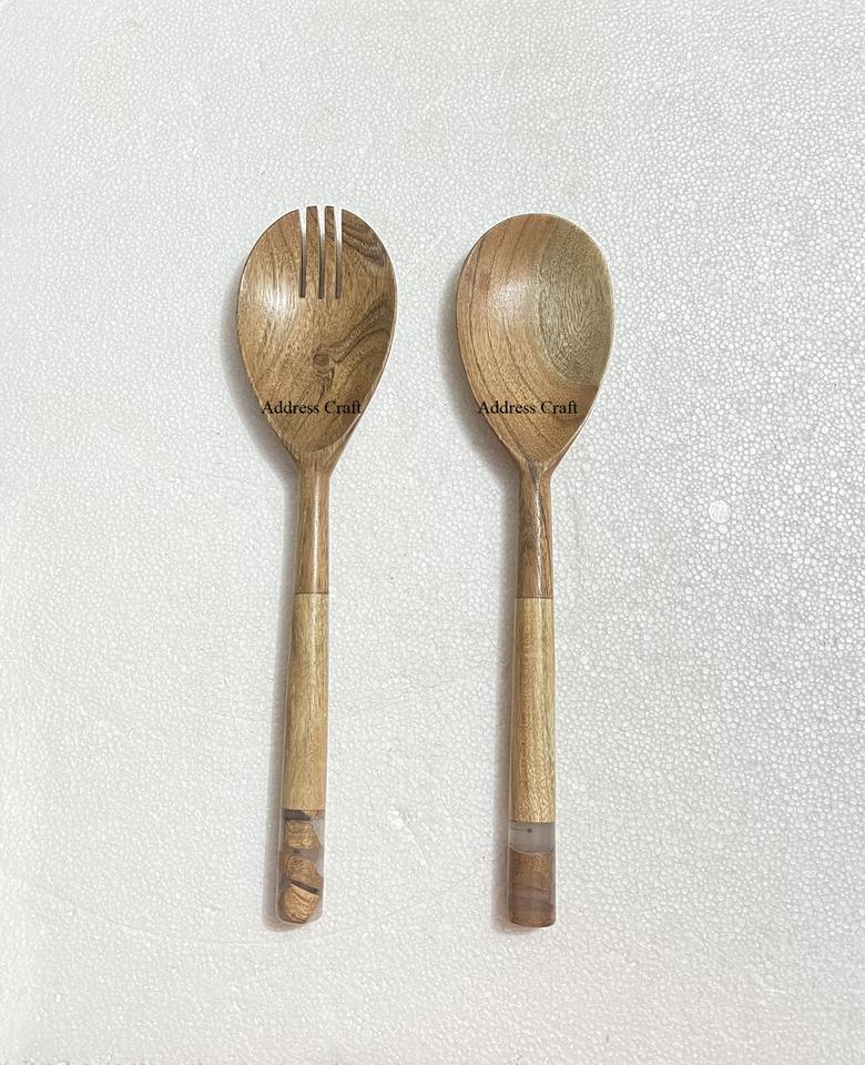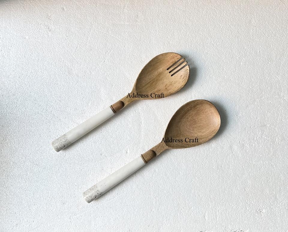 ไม้มะม่วงขัดเงามือจับหินอ่อนหินขัดสำหรับเครื่องครัวอุปกรณ์สลัดช้อนส้อมรับประทานอาหารไม้