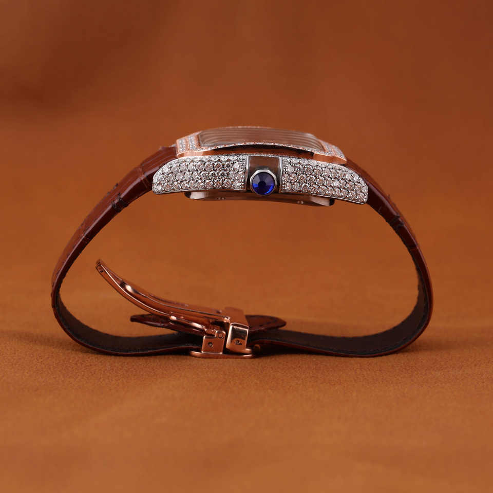 นาฬิกาข้อมืออะนาล็อกแบบกลไกพรีเมียมรุ่นใหม่ล่าสุด หน้าปัดทรงเหลี่ยม ประดับเพชรโมอิสซาไนต์ครึ่งหน้าปัด สไตล์ฮิปฮอปสุดหรู คุณภาพสูง