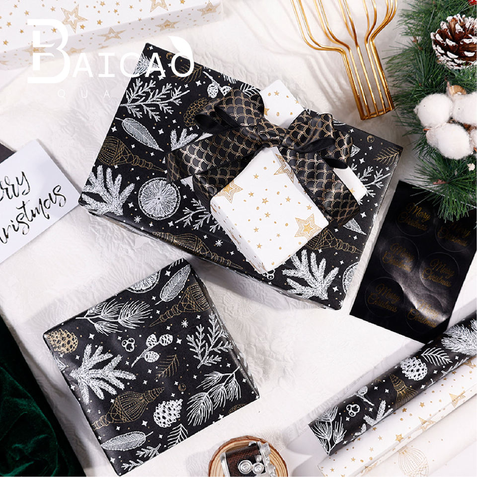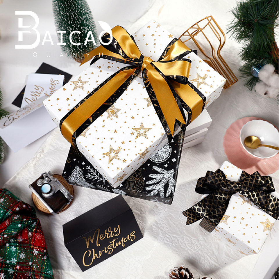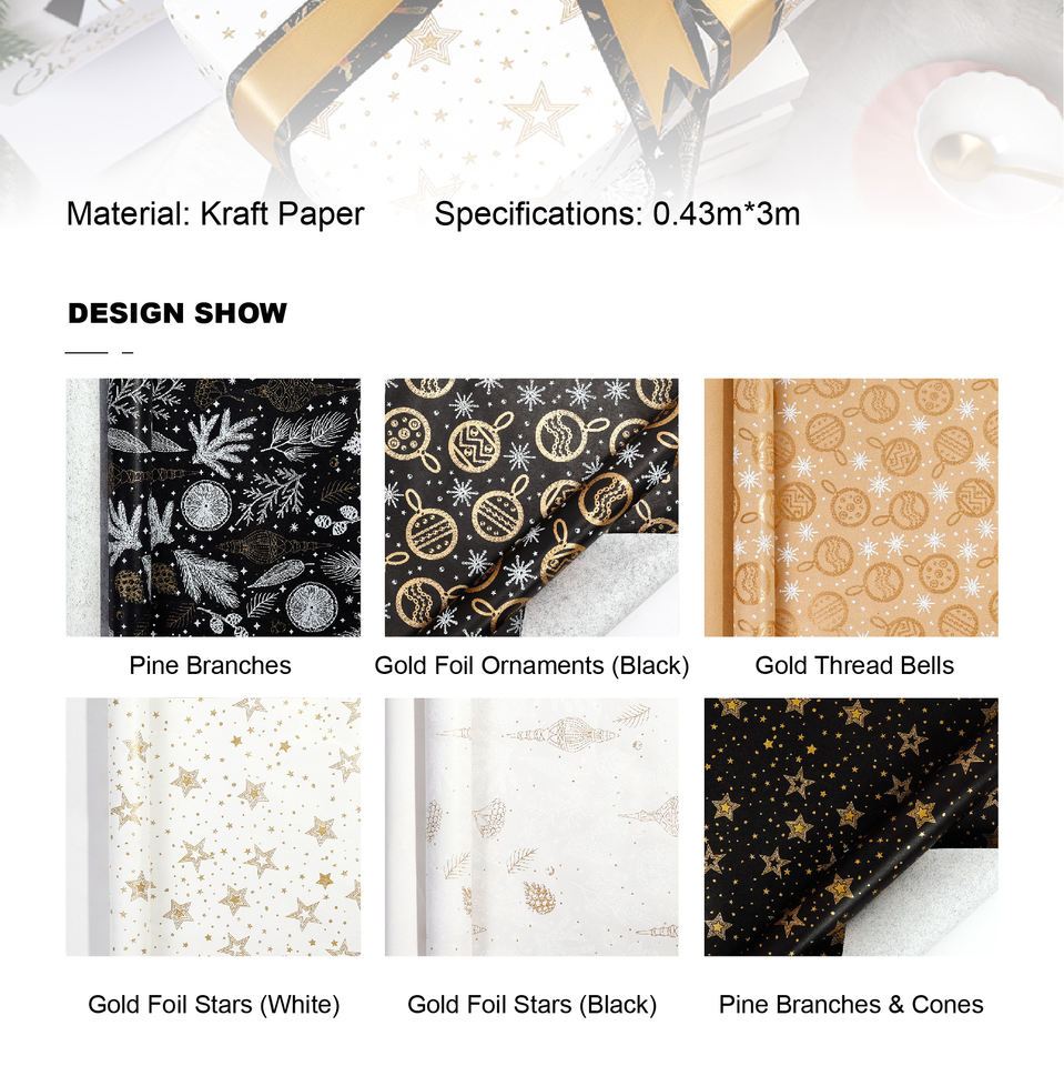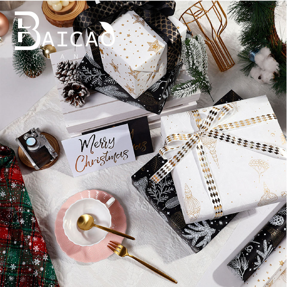กระดาษห่อของขวัญคริสต์มาสพรีเมียมแบบใหม่ พร้อมลายปั๊มฟอยล์ทองและเอฟเฟกต์โฟม ขายส่ง