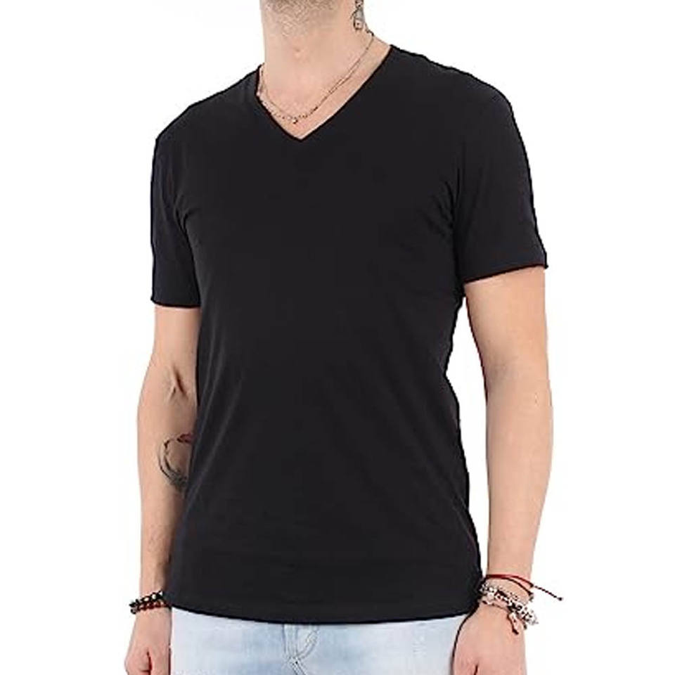 เสื้อยืดแขนสั้นของผู้ชายผ้าคอตตอนคอวีลึกเสื้อ100% เข้ารูประบายอากาศได้แฟชั่นใหม่ล่าสุด
