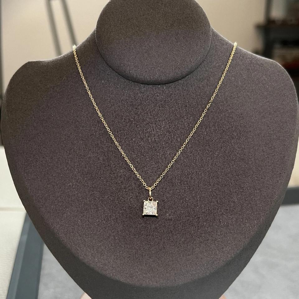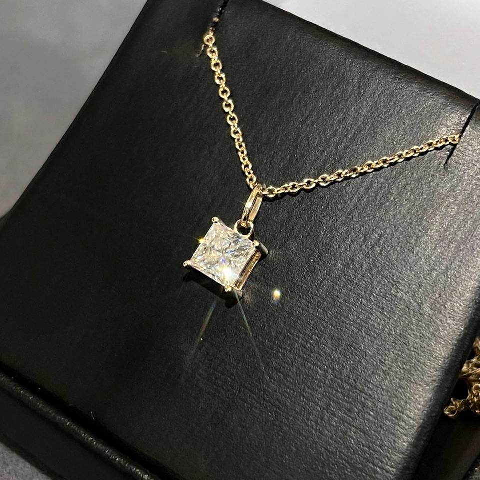 สร้อยคอจี้เพชรทรงเจ้าหญิงแบบใหม่ คุณภาพ VVS เพชรเลี้ยงในห้องปฏิบัติการ ตัวเรือนทองคำแท้ 14k สำหรับผู้หญิง ราคาประหยัด