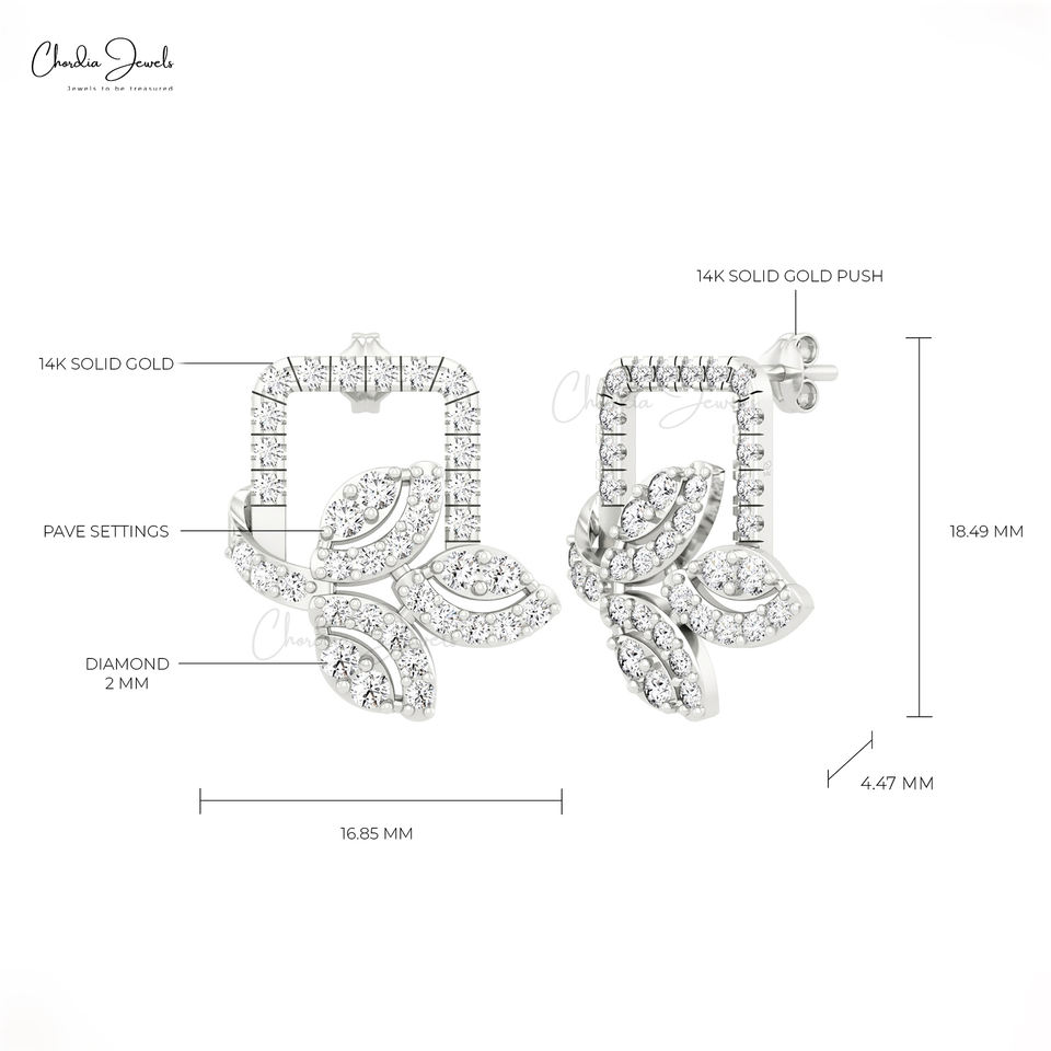สินค้ามาใหม่ชุด2024ต่างหูเพชรสีขาวธรรมชาติ1.29 CT ต่างหูทอง14K ลายดอกไม้เรียบง่าย