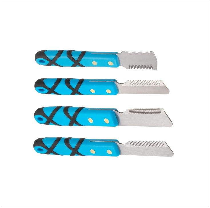 ชุดมีดตัดขนสัตว์เลี้ยงมืออาชีพแบบใหม่ ชุดอุปกรณ์กรูมมิ่งสำหรับสุนัขและแมว ด้ามไม้และใบมีดสแตนเลสสำหรับกำจัดขน