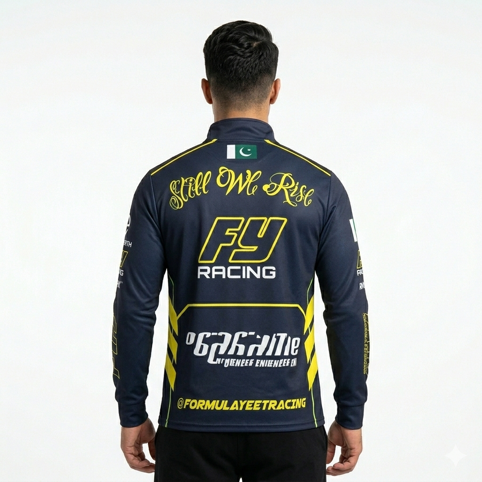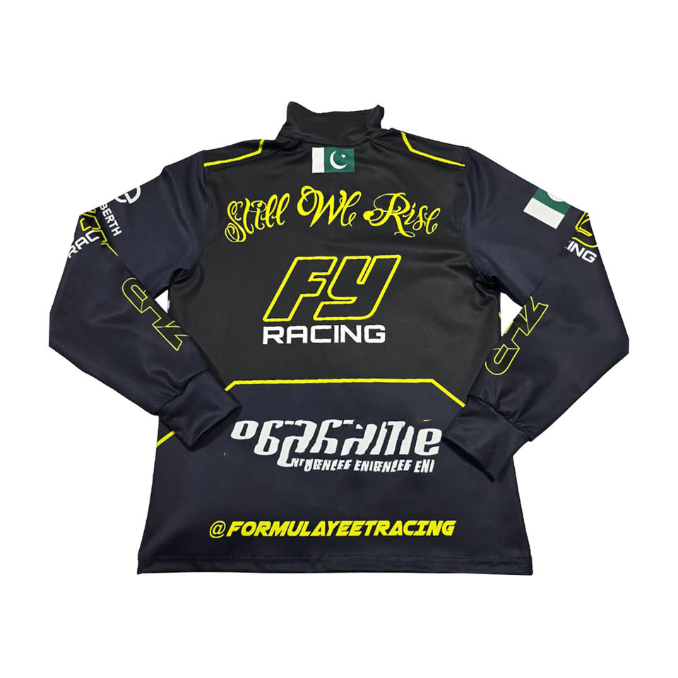 เสื้อแจ็คเก็ตบอมเบอร์รุ่นใหม่ ไซส์พลัส ซิป ¼ โลโก้แบบซับลิเมชั่น กันลม ปักลาย ผ้าสแปนเด็กซ์/โพลีเอสเตอร์ ทนไฟ สำหรับนักแข่ง