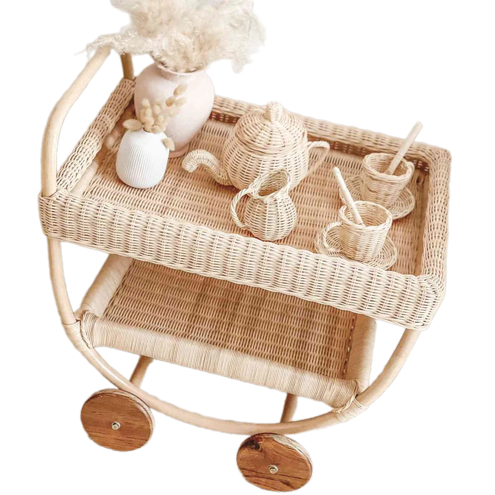 สินค้าใหม่มาใหม่หวายเด็กรถเข็นชาหวายรถเข็นสําหรับเฟอร์นิเจอร์สถานรับเลี้ยงเด็กทําด้วยมือในโรงงานเวียดนามในเวียดนาม