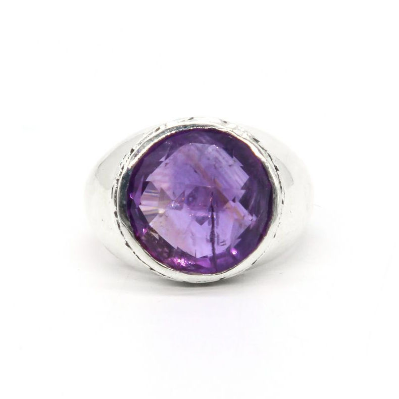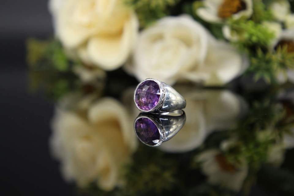 แหวนเงินแท้สำหรับสตรีลายดอกอเมทิสต์ของผู้หญิงแหวนแต่งงานแกะสลักลายดอกอเมทิสต์แท้925คุณภาพสูง