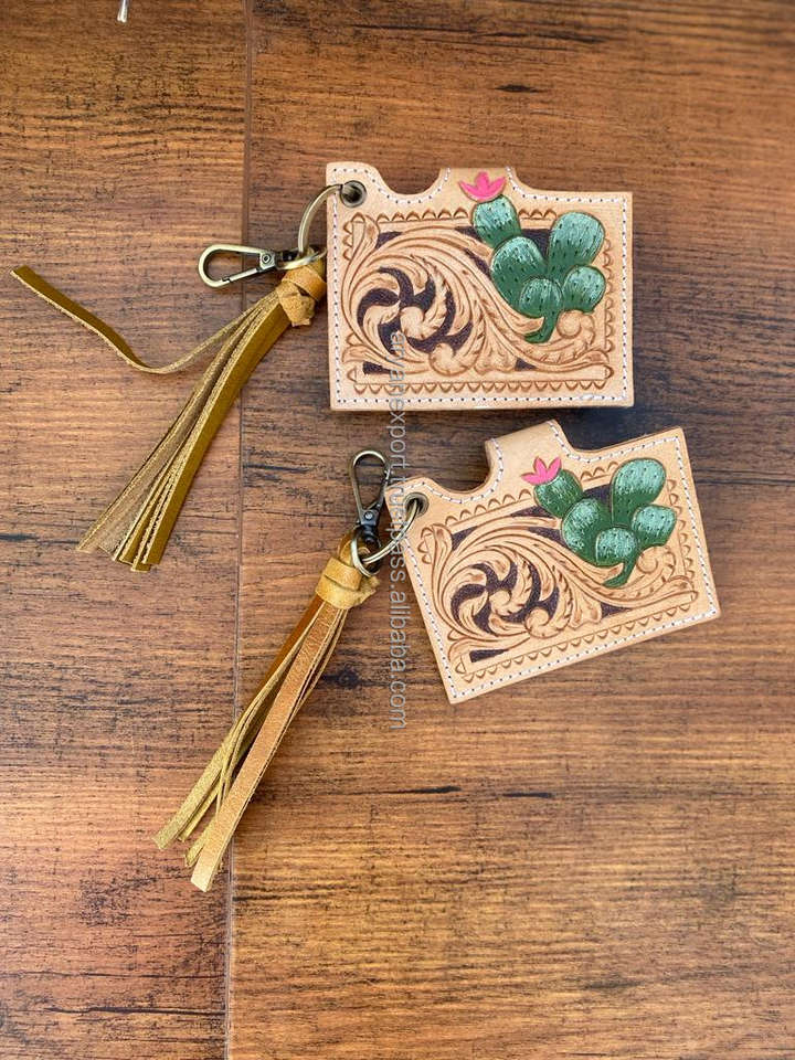 พวงกุญแจแบบแยกที่ใส่การ์ดเอทีเอ็มทำจากหนังลายดอกไม้มีสไตล์