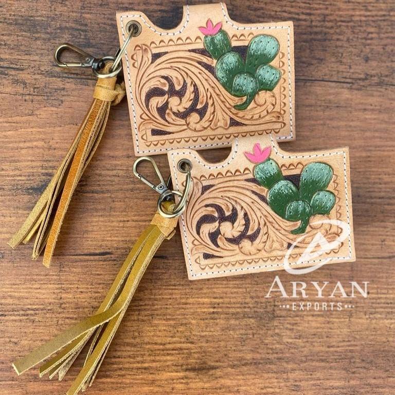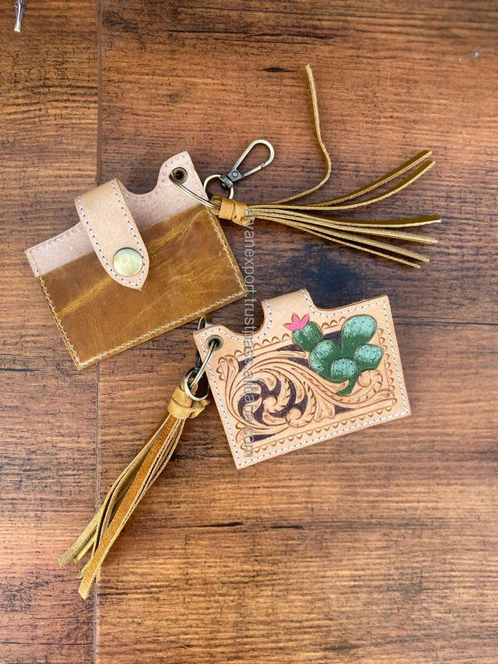 กระเป๋าใส่บัตรหนังแท้ลายดอกไม้มาใหม่พร้อมพู่ห้อยและพวงกุญแจเคสใส่การ์ดขนาดเล็กที่ได้รับแรงบันดาลใจจากตะวันตก