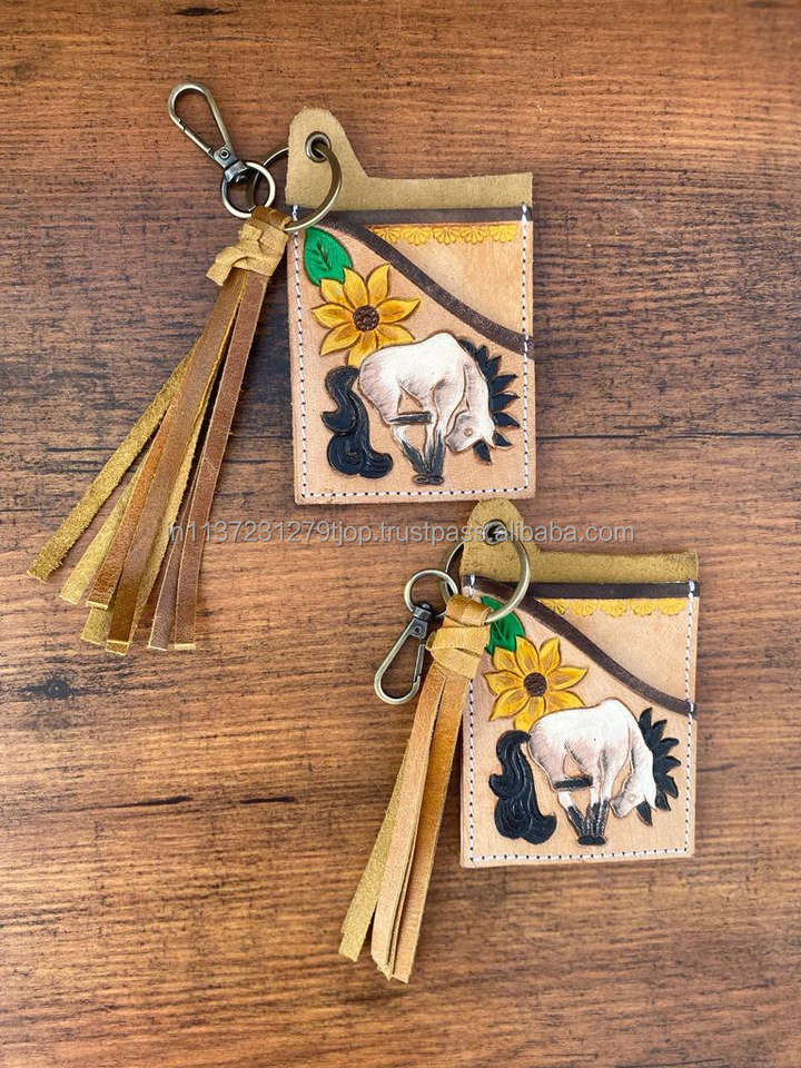 Product name:Stylish floral Tooled Leather ATM Card Holder with keyring