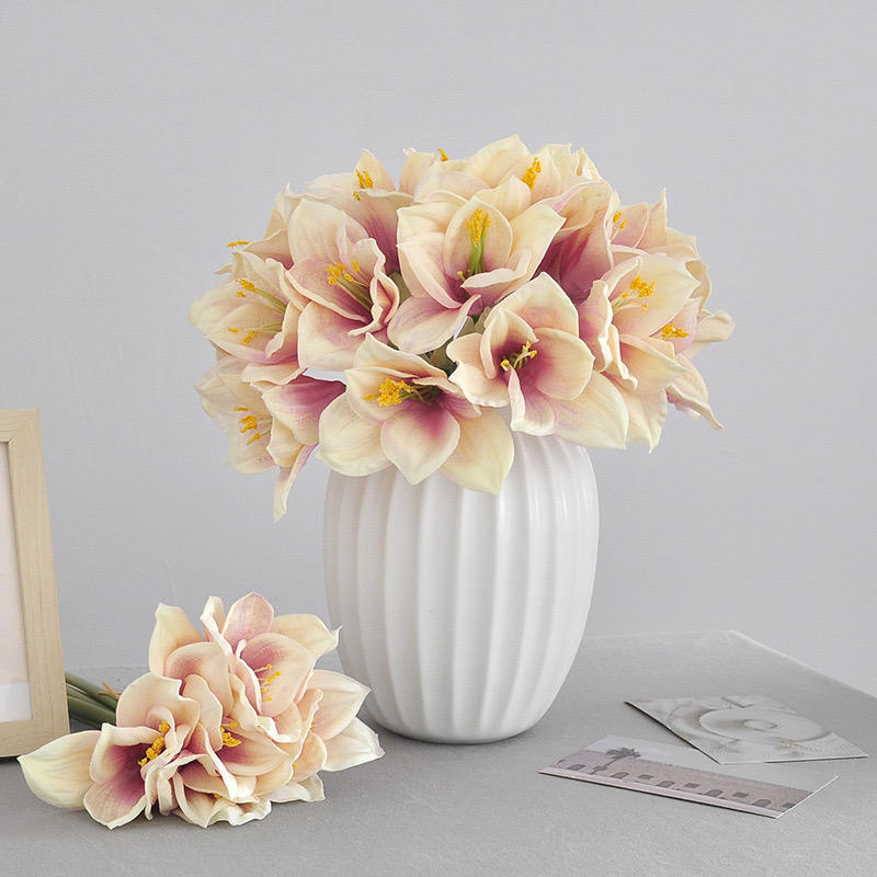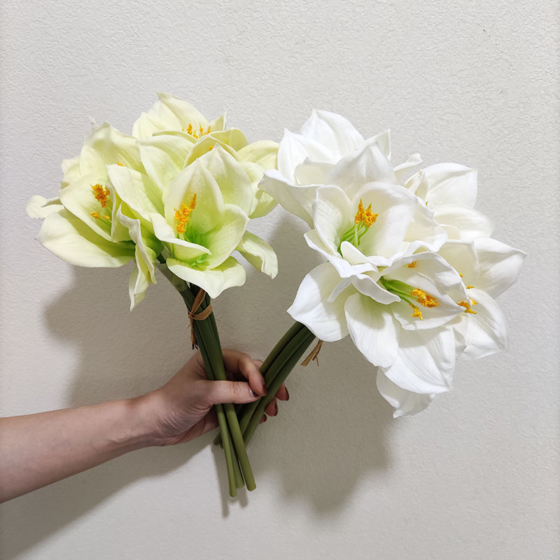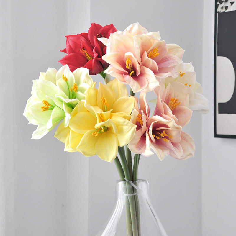 ดอกไม้ดอกอะริลลิสแบบสัมผัสจริงมาใหม่ช่อดอกกล้วยไม้ผ้าไหมเทียมอมาริลลิส