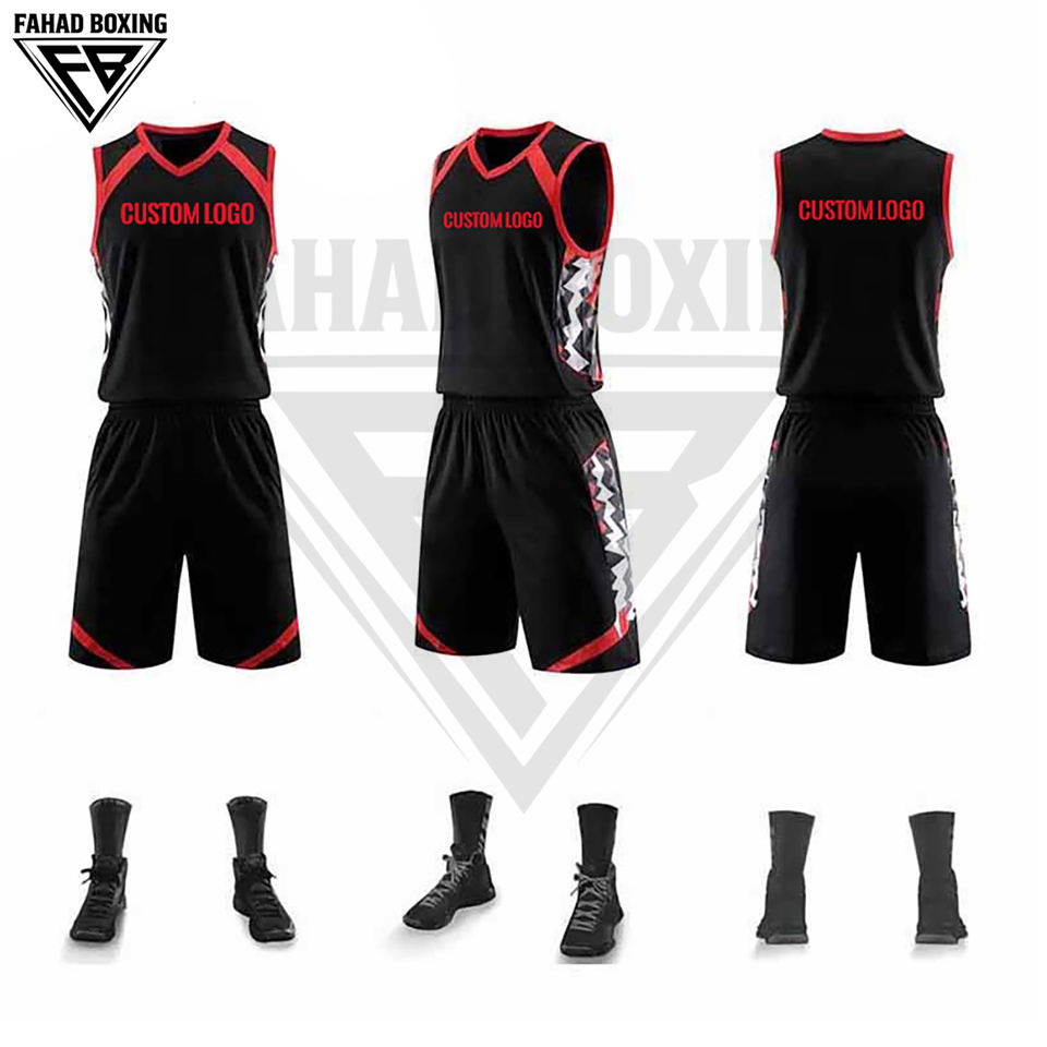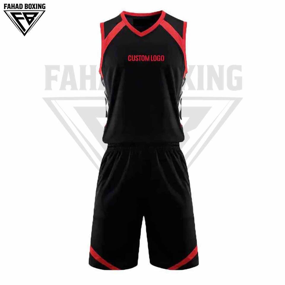 สินค้ามาใหม่ สีแดงดำ โพลีเอสเตอร์ 100% ชุดกีฬาบาสเก็ตบอลสำหรับผู้ใหญ่และเด็ก แห้งเร็ว ระบายอากาศได้ดี เหมาะสำหรับกิจกรรมกลางแจ้ง แบบ unisex สำหรับทีม