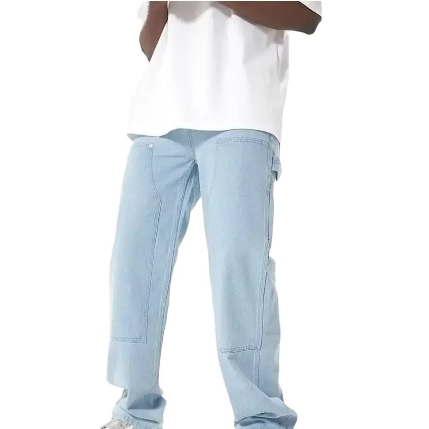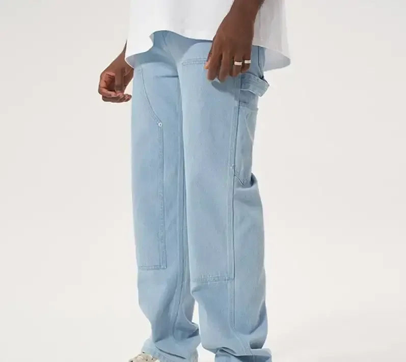 กางเกงยีนส์ผู้ชายทรงปกติรุ่นใหม่ล่าสุด คุณภาพดีที่สุด กางเกงยีนส์ทรงตรงลำลองสไตล์แบ็กกี้สำหรับผู้ชาย