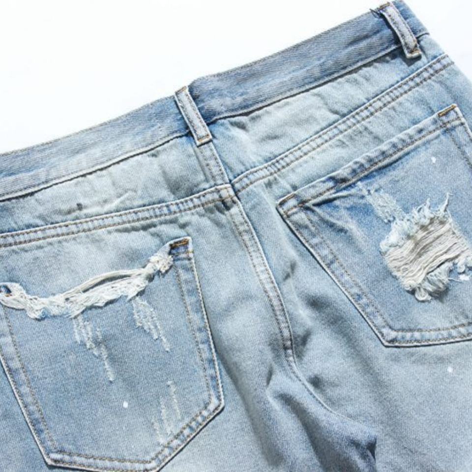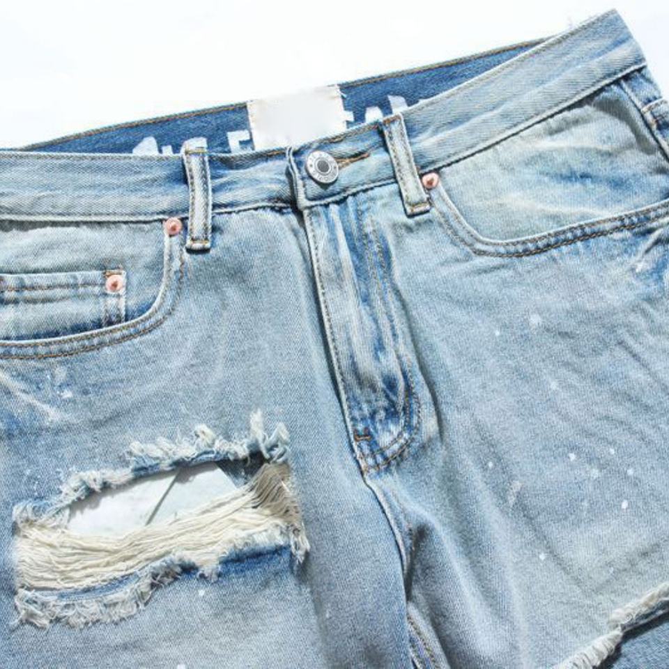 กางเกงยีนส์ขาสั้นขาดเซอร์ๆ สไตล์ฮิปฮอป แฟชั่นลำลอง สีน้ำเงิน สำหรับผู้ชาย รุ่นใหม่ล่าสุด
