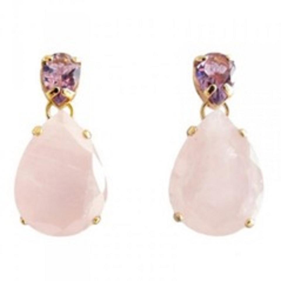 Rose Chalcedony & Amethyst ต่างหูทรงลูกแพร์,ต่างหูเงินแท้925พลอยสีม่วงแดง
