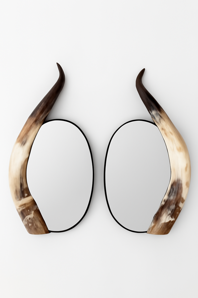New Arrival Round Natural Horn Finish Resin Wall Mirror Handmade Decorative Mirror for Living Room Bedroom Vanity Interiors