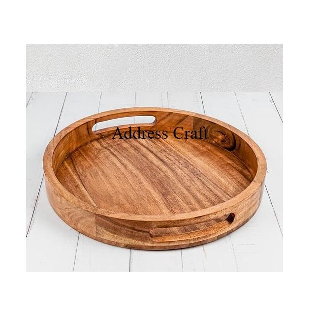 ถาดเสิร์ฟไม้มะม่วงทรงกลมขนาด 14 นิ้ว งานแฮนด์เมด ดีไซน์หรูหรา สำหรับอาหารเช้า ภาชนะครัว ใช้กับเครื่องล้างจานและไมโครเวฟได้