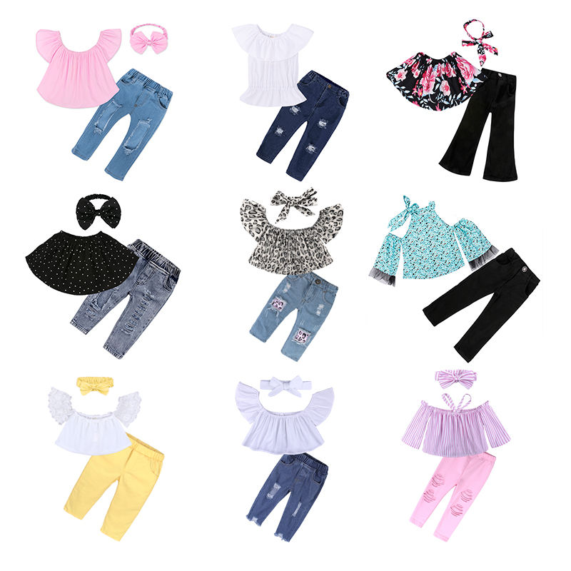 ชุดเสื้อผ้าเด็กผู้หญิงแบบใหม่ล่าสุด ดีไซน์ระบายไหล่เฉียง สไตล์บูติก