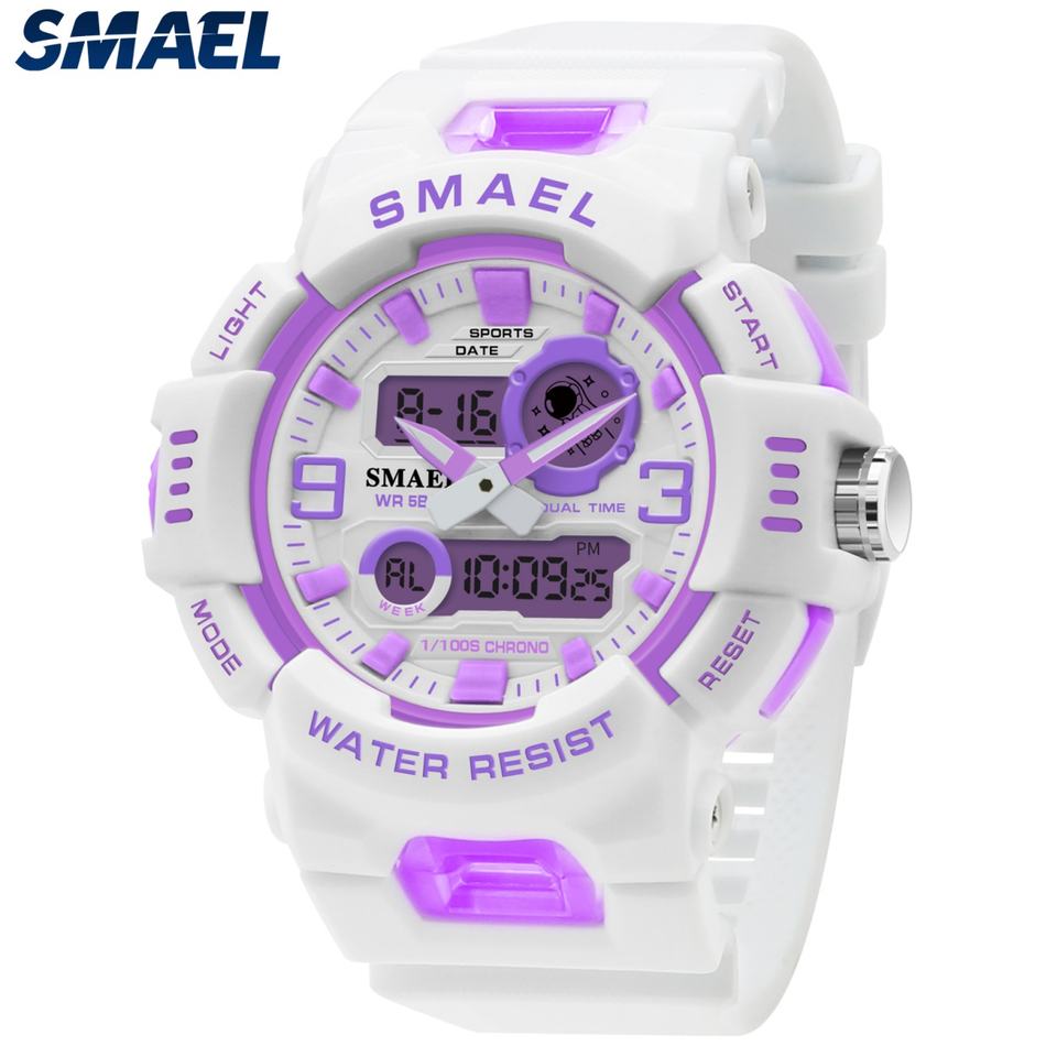 นาฬิกาข้อมือ SMAEL 8083 สีขาว รุ่นใหม่ล่าสุด สำหรับผู้ชาย ระบบโครโนกราฟ ดิจิตอลและอนาล็อก สามารถสั่งทำโลโก้ของคุณเองได้