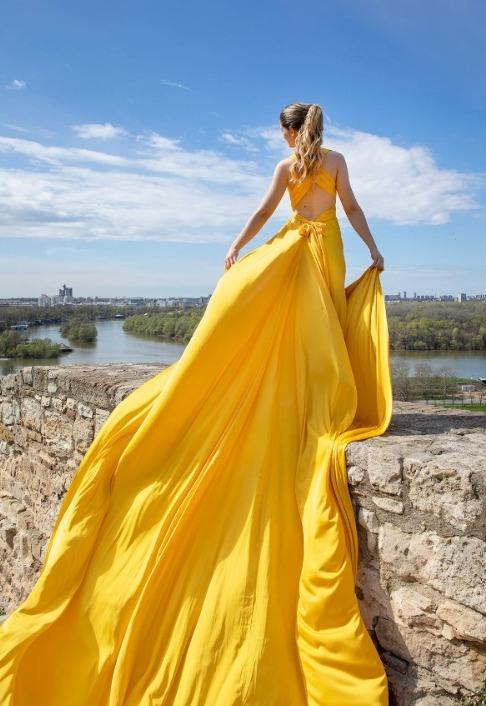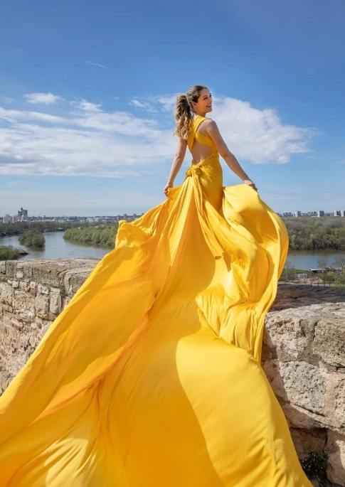 ชุดเดรสยาวสำหรับผู้หญิงชุดเดรสบินลายดอกไม้แขนยาวลายท้องฟ้าซานโตรีนีดีไซน์ล่าสุด