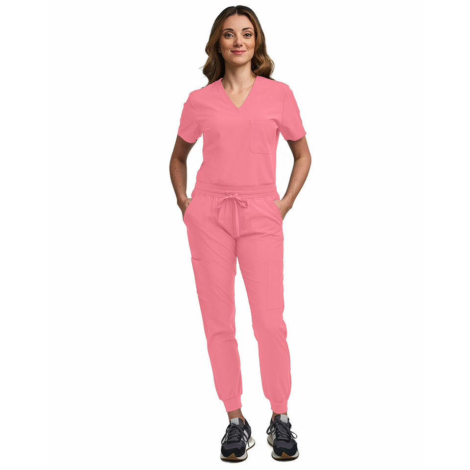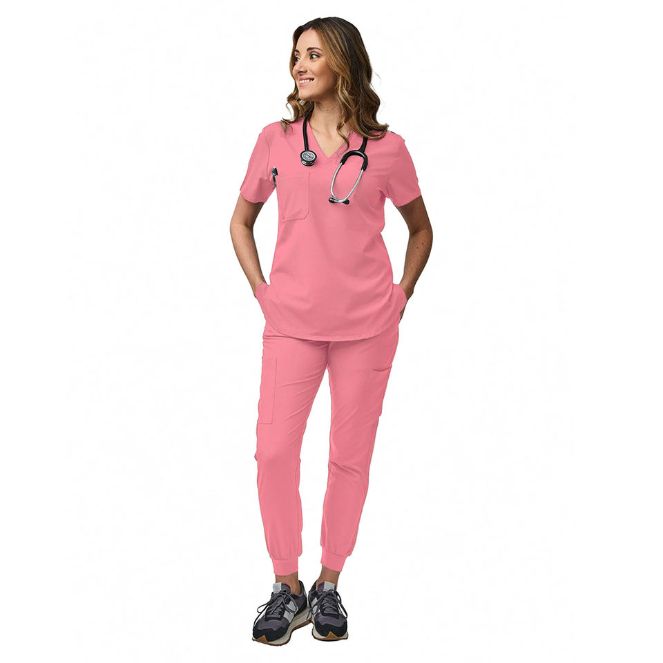 ชุดยูนิฟอร์มพยาบาลแบบใหม่ สีชมพู แขนสั้น กางเกงจ็อกเกอร์ ชุดสครับพยาบาลสำหรับสุภาพสตรี