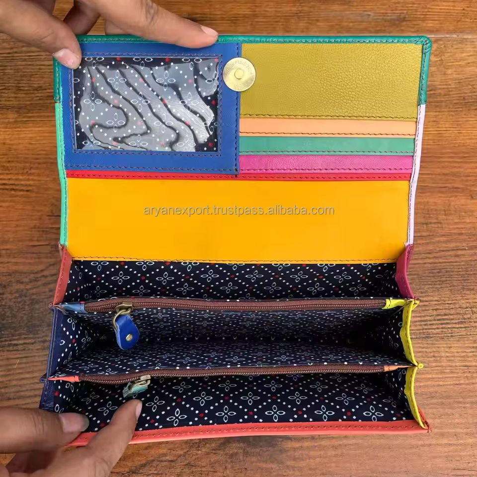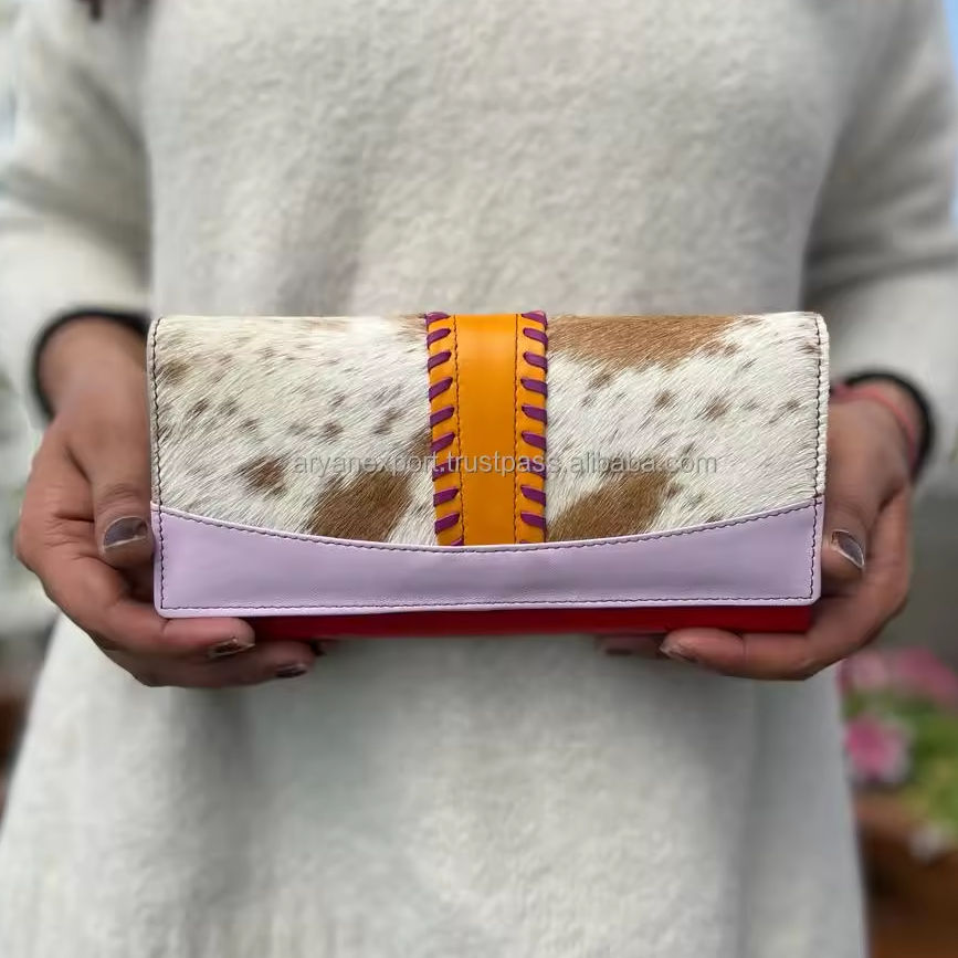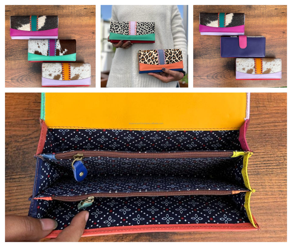 หนังรีไซเคิลแฮนด์เมดมีสไตล์พิมพ์สัตว์คลัทช์ที่ไม่ซ้ํากันผู้หญิงหลายสีกระเป๋าขายร้อนกระเป๋าสตางค์หนังรีไซเคิลที่สวยงาม