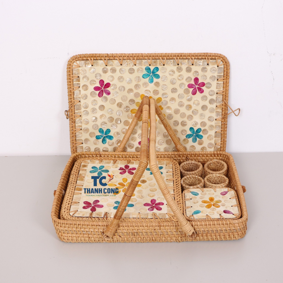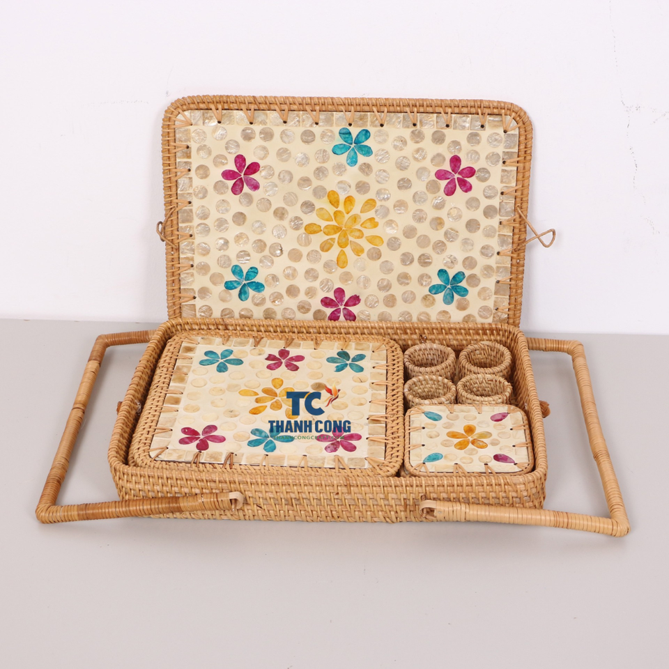 ชุดหวายปักลายแม่มุกมาใหม่ถาดรองจานหวายหวายตกแต่งบ้านผลิตจากเวียดนาม