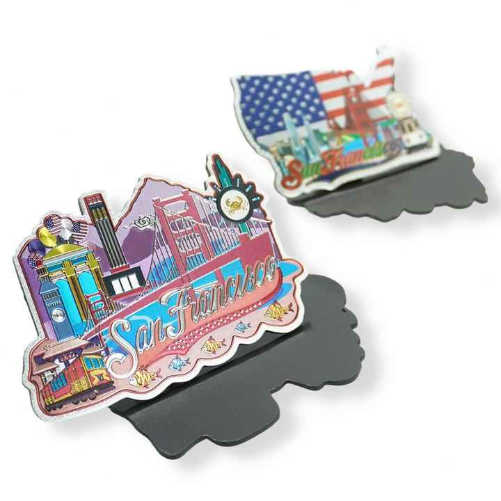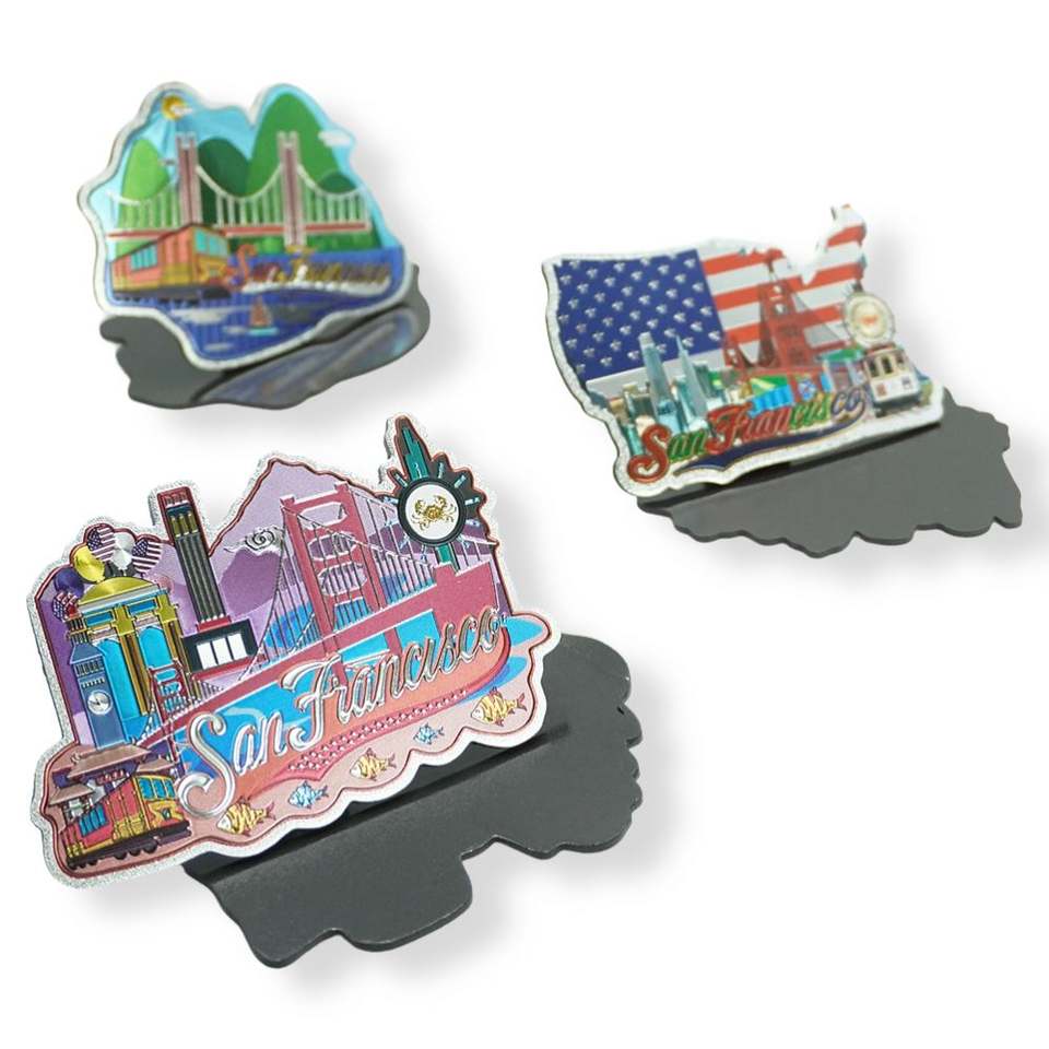 ของที่ระลึกใหม่มาแรง แม่เหล็กติดตู้เย็นลายฟอยล์อะลูมิเนียมสีเงิน พิมพ์ลายนูนด้วย UV