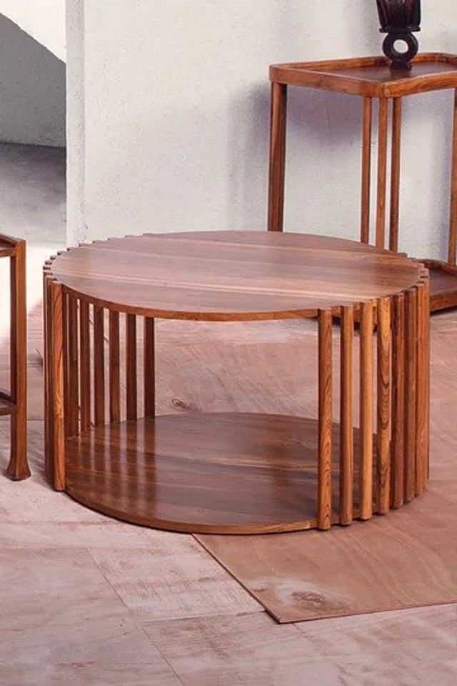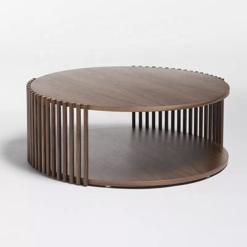 โต๊ะกาแฟทรงกลมไม้ดีไซน์เรียบง่ายแบบตั้งพื้น 2 ชั้น พร้อมชั้นวางของ 2 ชั้น สไตล์มินิมอล เหมาะสำหรับห้องนั่งเล่น โต๊ะตกแต่งบ้าน ใช้ในออฟฟิศได้