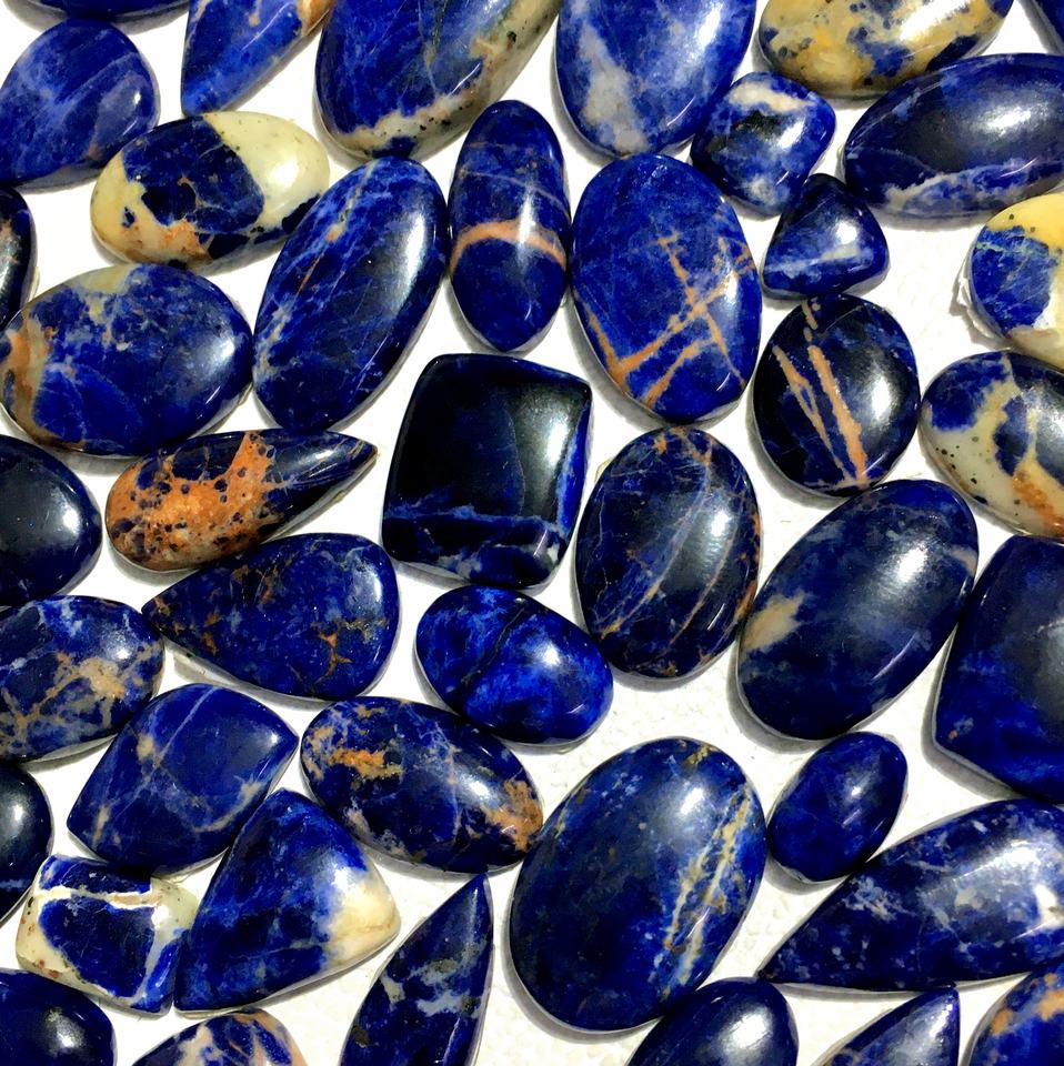 พลอยโซดาไลต์แบบหลวมขัดเงาด้วยมือ รูปทรงผสมผสาน ธรรมชาติ ไม่มีรู ได้รับการรับรองจากผู้ตรวจสอบอิสระ เหมาะสำหรับทำเครื่องประดับ