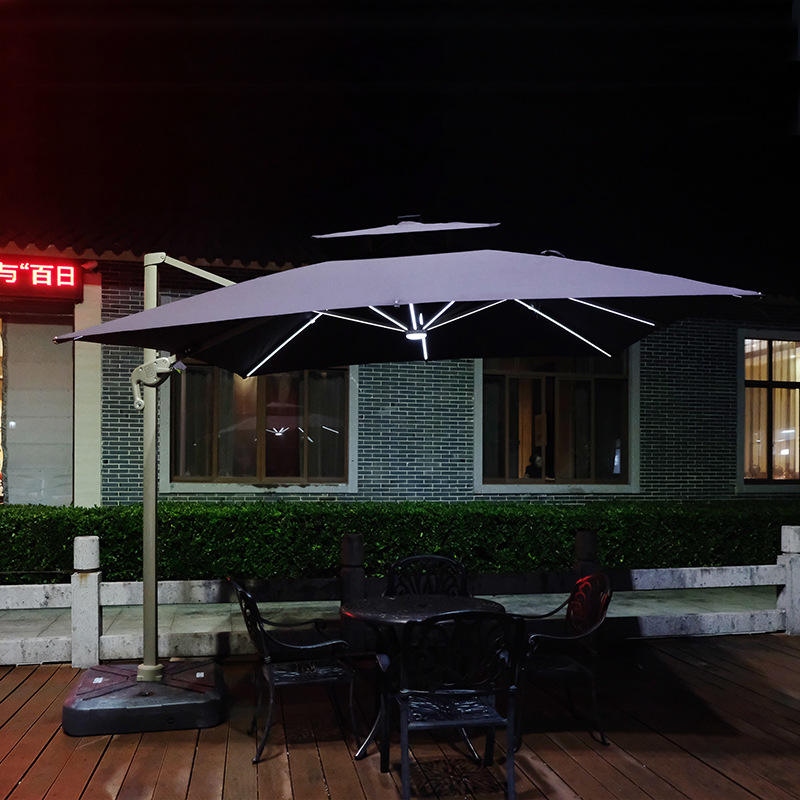 New Arrival Solar Power Sunshade Luxury Heavy Duty Steel 3*2M Beach Umbrella Outdoor Sombrilla De Playa