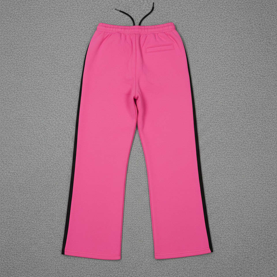 กางเกงวอร์มสีชมพูพื้นแบบโอเวอร์ไซส์สำหรับผู้หญิง รุ่นใหม่ล่าสุด ปรับแต่งผ้าได้ เอวยางยืด แต่งแถบสีดำ ระบายอากาศได้ดี