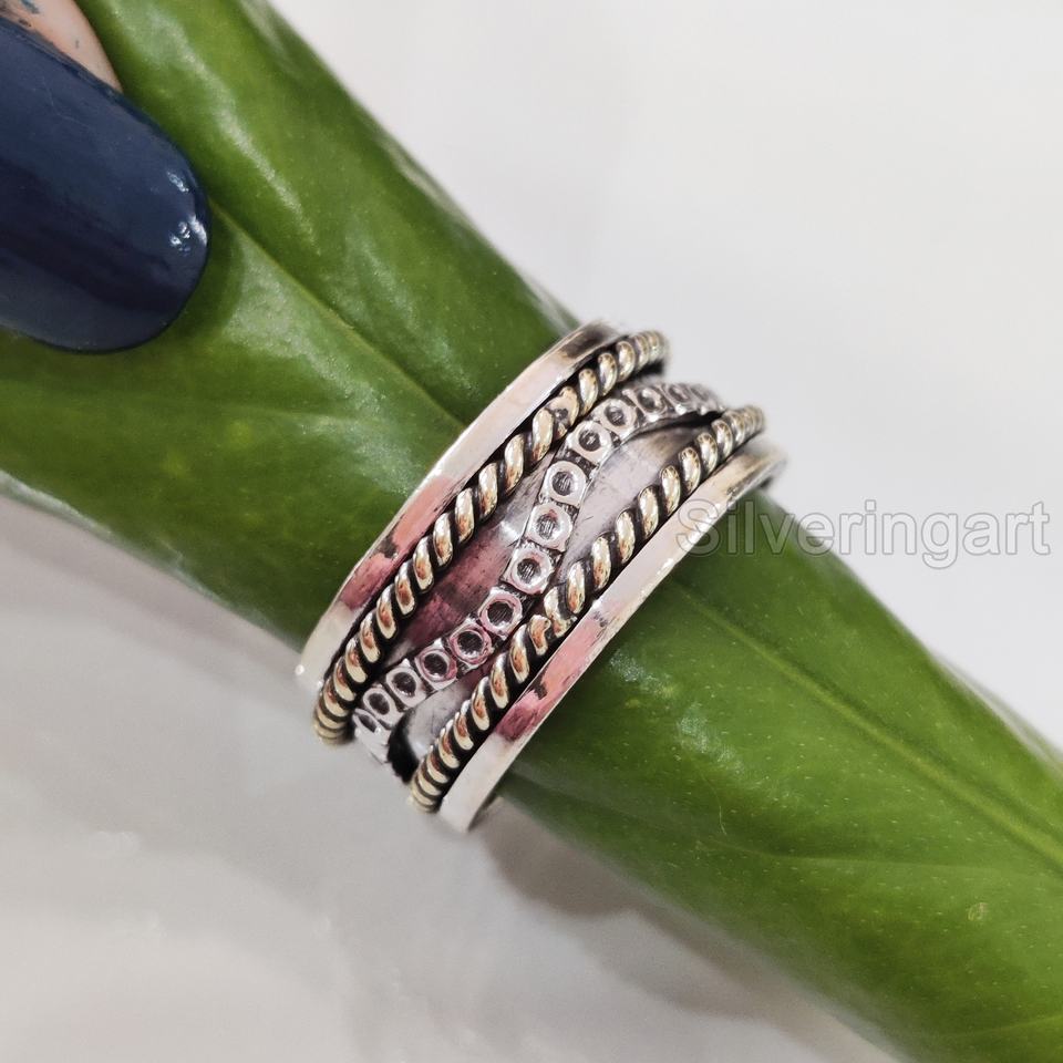 แหวนสปินเนอร์925สไตล์โบฮีเมียนแหวนเงินสเตอร์ลิงสำหรับผู้หญิงเครื่องประดับโยคะทำด้วยมือแหวนสปินเนอร์สำหรับผู้ชาย