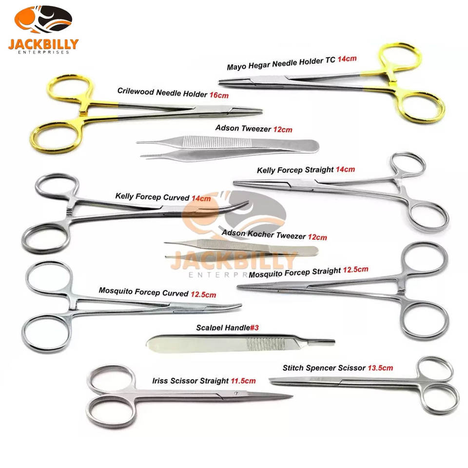 ชุดเครื่องมือผ่าตัดแบบแมนนวลสำหรับการผ่าตัดเล็ก ทำจากสแตนเลส รุ่นใหม่ล่าสุด สำหรับการถอดไหมเย็บ 11 ชิ้น
