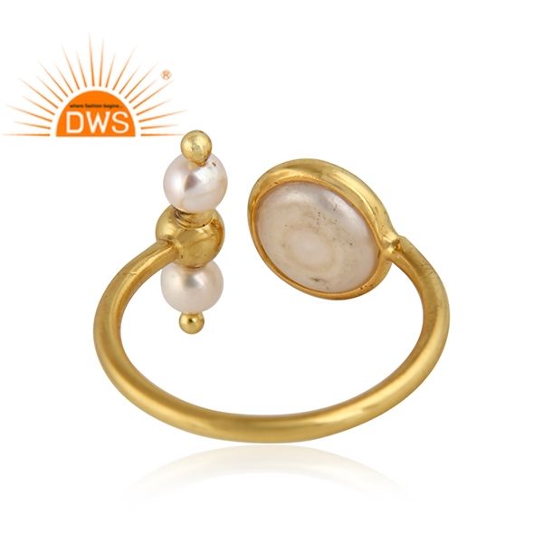แหวนไข่มุกธรรมชาติชุบทอง18K เงินแท้ปรับได้ผลิตตามแบบ