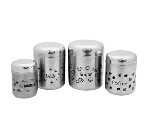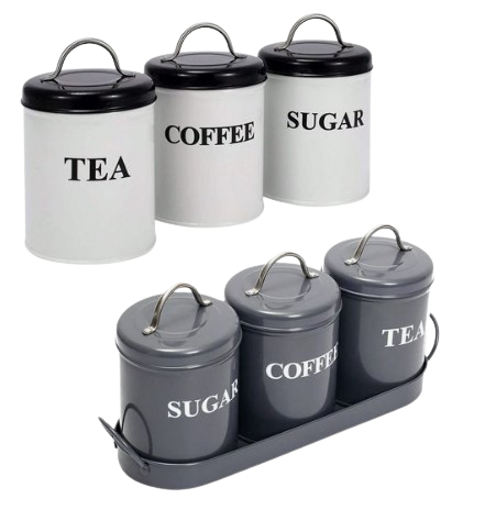 กล่องเก็บของโลหะแบบใหม่ ชุดกระป๋องโลหะสำหรับเก็บชา กาแฟ และน้ำตาลในครัว