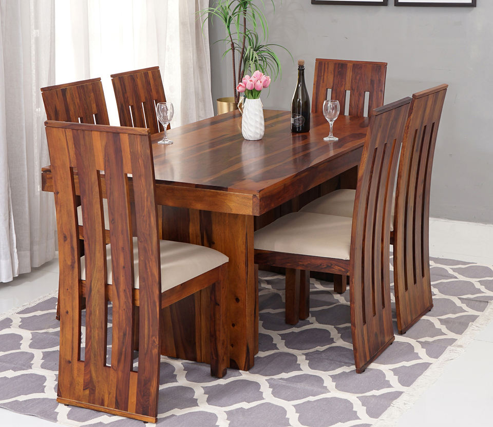 ชุดโต๊ะอาหารไม้ชีแชม รุ่นใหม่ แข็งแรง ทนทาน และสะดวกสบาย พร้อมเก้าอี้ไม้ 6 ตัว รุ่นยอดนิยม