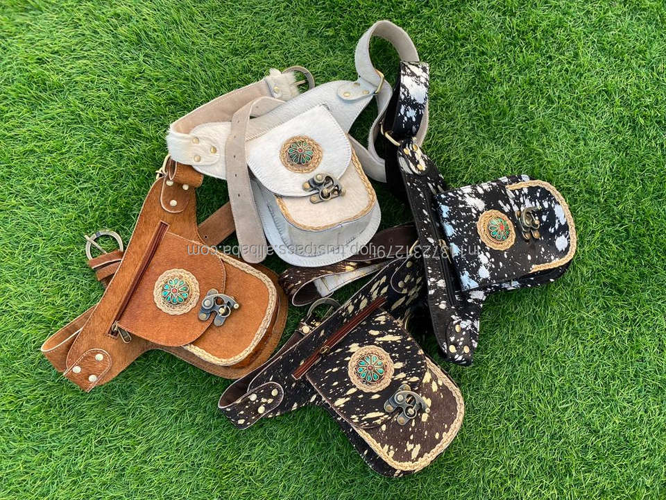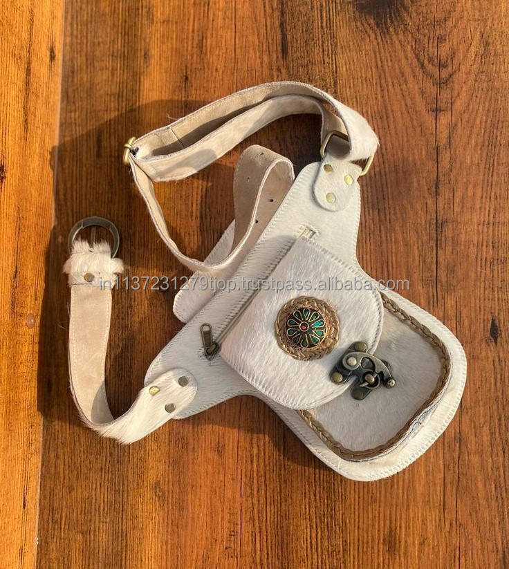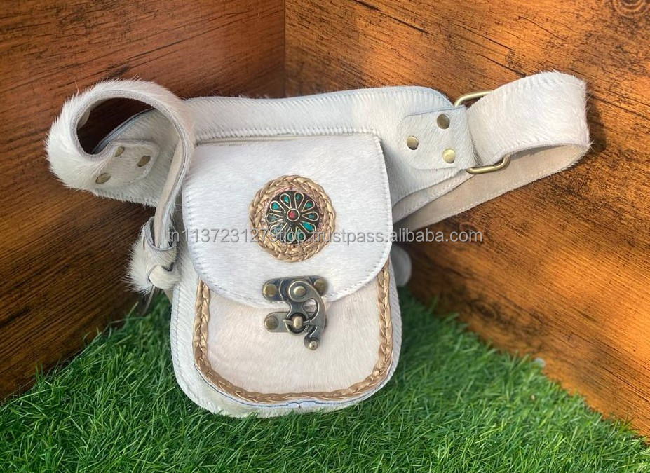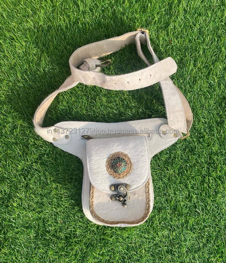 Western Unisex Cowhide Fur Leather Unique Hip Pocket Belts