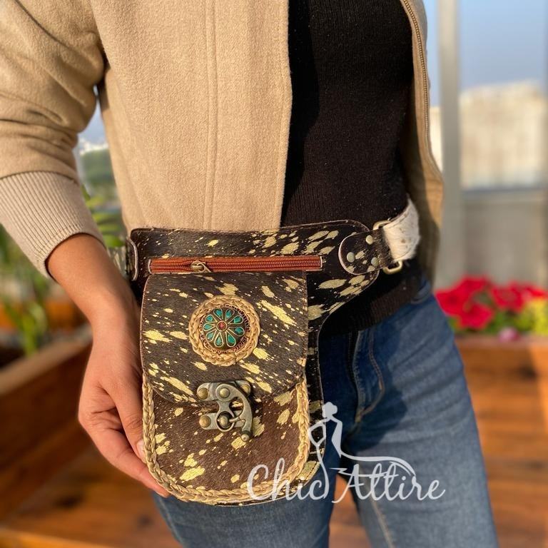 Type:Western Unisex Metallic Fur Leather Unique Hip Pocket Belts