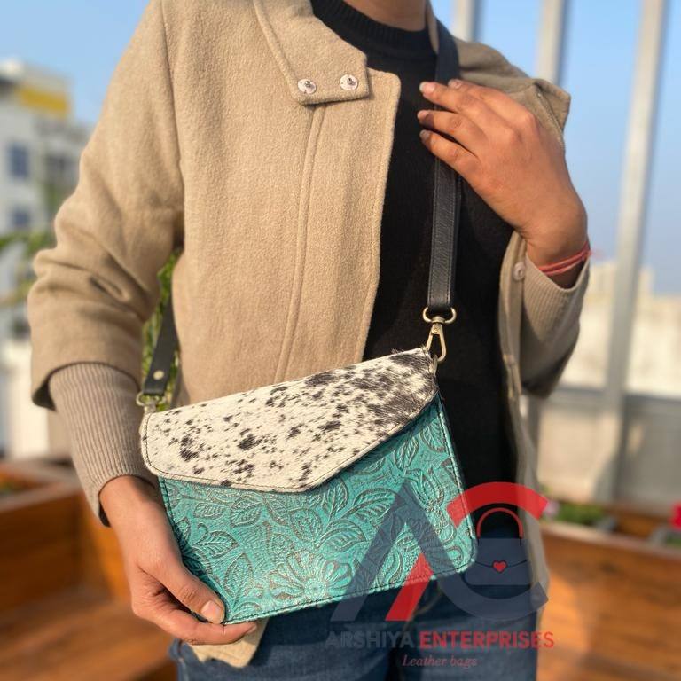 Stylish Women Embossed Real Cowhide Fur Leather Sling Bag