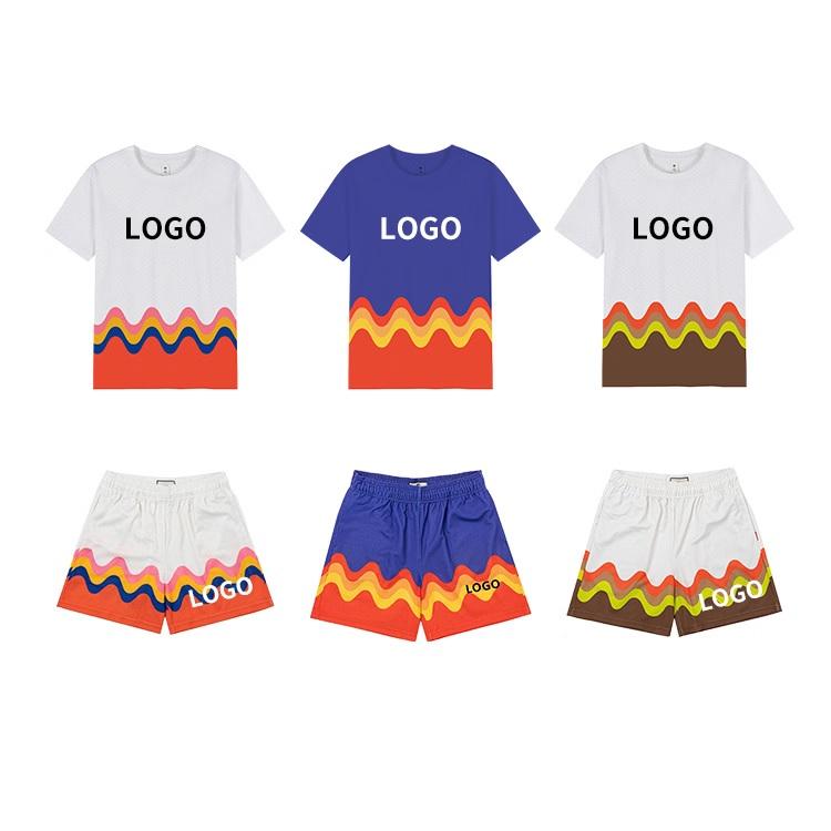 ชุดวอร์ม2ชิ้นสำหรับผู้ชายมาใหม่ฤดูร้อนเซตสั้นสำหรับผู้ชายเสื้อยืดกีฬาแบบซับลิเมชันแบบลำลอง