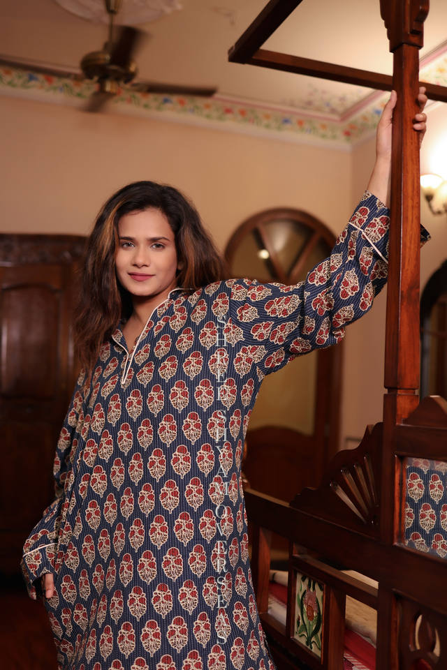 คอลเลคชั่นใหม่ล่าสุด ฤดูร้อน-ฤดูใบไม้ร่วง 2024 ลายเสือดาวและลายเพสลีย์ 1 แบบ ชุดคุर्ตาสั้นสำหรับผู้หญิง ผ้าฝ้าย 100% ผลิตในอินเดีย